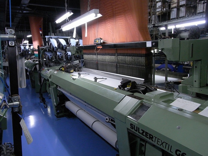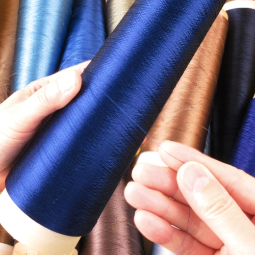 生地は、昔から絹織物の産地として有名な群馬・桐生にあるアラ商事の工場で丁寧に織り上げました。複雑かつ立体的なジャカード柄を表現するのに適した織機でゆっくりと織っています。職人一人一人の手に頼り、丁寧に、じっくりと、熟成させるがごとく、時にはあえて非効率な手作業を駆使しています。