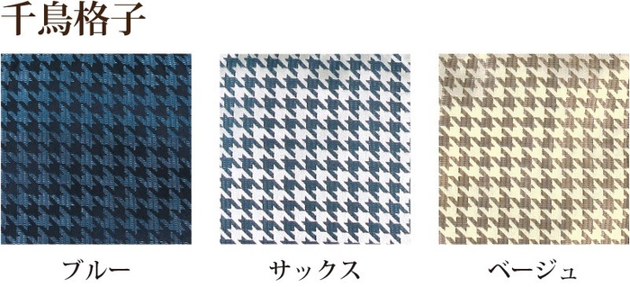 千鳥格子は英国の伝統あるデザイン(ハウンドトゥース)。ユニセックスで使用でき、表面はシルク生地のホワイトベース2色(多色使い)・ブルーベース1色(多色使い)の計3色展開になっています。千鳥格子デザインの中にある淡色ベース部分に「あまり糸」を使用した、ランダムのタテ糸がのぞいており、ジャカード生地ならではの奥行きの感じるデザイン表現になっています。