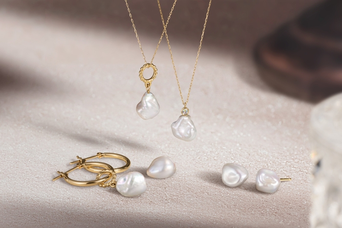 天然のバロックパールを使用した、チャーム・ピアス・ネックレスのコレクション。長年オーダーメイドで世界にひとつのジュエリーを手掛けてきたケイウノだからこそ、“自然が生み出した個性的なパールの愛おしさを楽しめるジュエリーをお届けしたい”との想いから企画しました。コレクション名は、「Pearl(真珠)」にイタリア語の「小さい、可愛い、愛しい」を表現する「~ina」を融合させた造語で、個性を愛おしく想う気持ちを表現しています。