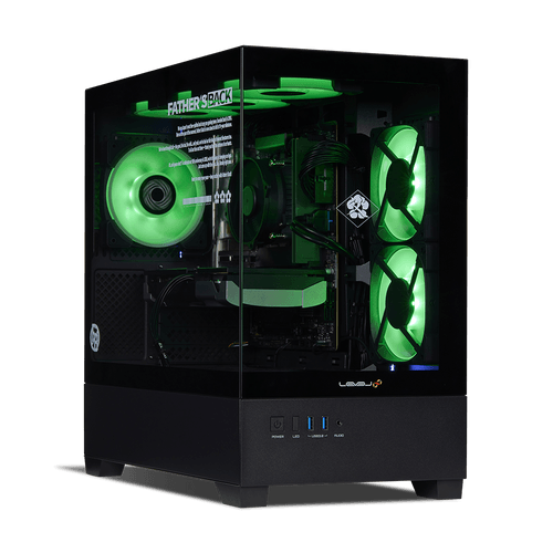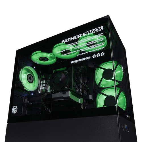 側面に最大2基、天面と背面に合計4基、最大6基のLEDファンを搭載。上質なLEDライティングと父ノ背中のオリジナルデザインが楽しめる左側面のオリジナルガラスパネル。