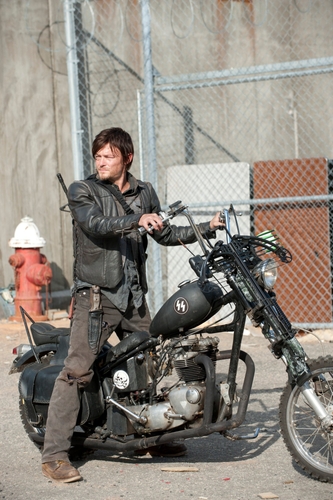『ウォーキング・デッド』(AMC 2010-2022、シーズン1-4)に登場する、ダリル・ディクソン(ノーマン・リーダス)が乗ったカスタム・チョッパーバイク。 ブラックのトライアンフ・ボンネビルをカスタムしたモデルで、1960年代のトライアンフ製フレームにボンネビルのガスタンクを搭載し、エイプハンドルとライザー、レザーシート、ハードテール式リアサスペンション、そして右ハンドルバーに取り付けられた武器ホルダーなど、こだわりのカスタムが随所に施されています。フレームとガスタンクの両側には、ドクロと骨をモチーフにした特徴的なマークと、ナチス親衛隊の稲妻を模したデカールがあしらわれています。最初の3シーズンを通して登場するこの象徴的なバイクは、シーズン1第1話で生存者キャンプの必需品として初登場します。第5話では、ダリル・ディクソン(ノーマン・リーダス)が、かつて暴力的な兄メルル・ディクソン(マイケル・ルーカー)が所有していたこのバイクをトラックに積み込み、自身の移動手段として使い始めます。