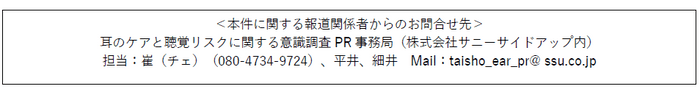 大正製薬株式会社は、この度20〜60代の男女1,000名を対象に「耳のケアと聴覚リスク」に関する意識調査を行いました。