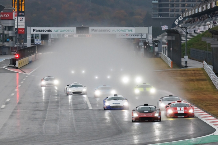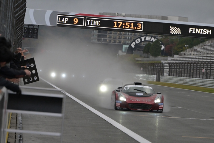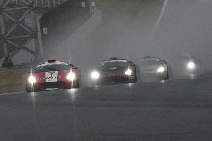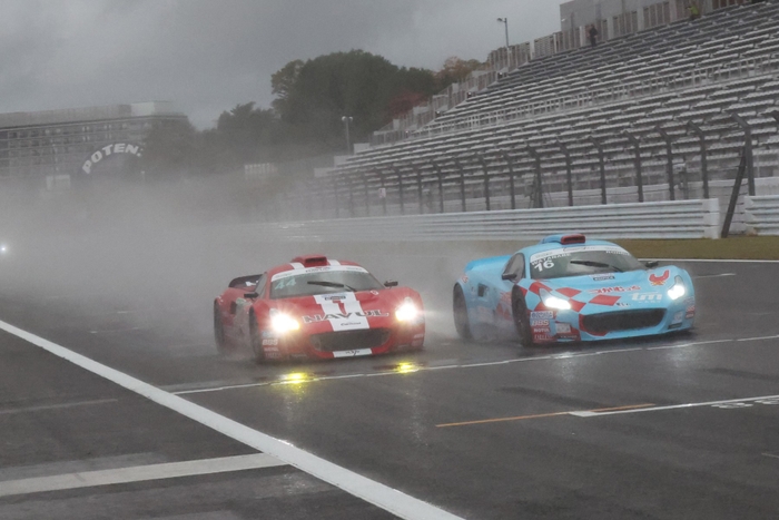 9日(日)の決勝レースは、一転して雨模様となり、各車ともレインタイヤを履いて第5戦決勝(9周)がスタートした。ポールポジションの牧野はトップを死守したまま序盤の3周を終えたが、4周目のコカ・コーラコーナーでやや膨らんだところを、背後につけていた山下が並びかけ、ADVANコーナー手前でトップを奪取。終盤に2台が接近する場面もあったが、順位が入れ替わることなくチェッカーフラッグとなり、山下が今シーズン初優勝を飾った。