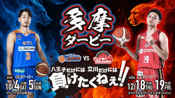 「多摩ダービー」とは、東京都多摩地域を拠点とする2つのプロバスケットボールチーム、立川ダイスと東京八王子ビートレインズによる対戦試合です。両チームによる熱戦は、バスケットボールファンのみならず、地域の方々にも楽しんでいただけるイベントとして毎年注目を集めています。また、地域振興を目的とした共同イベントの開催など、スポーツを通じた地域活性化にも貢献しています。