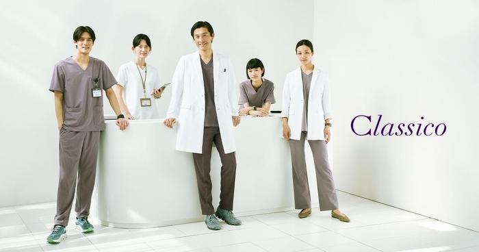 「かっこいい白衣がない」というある医師の一言をきっかけに、メディカルアパレルブランドのクラシコは2008年に誕生し、「医療現場に、感性を。」というミッションのもと、デザイナーの感性と高い機能性を両立した医療用白衣やスクラブを展開しています。