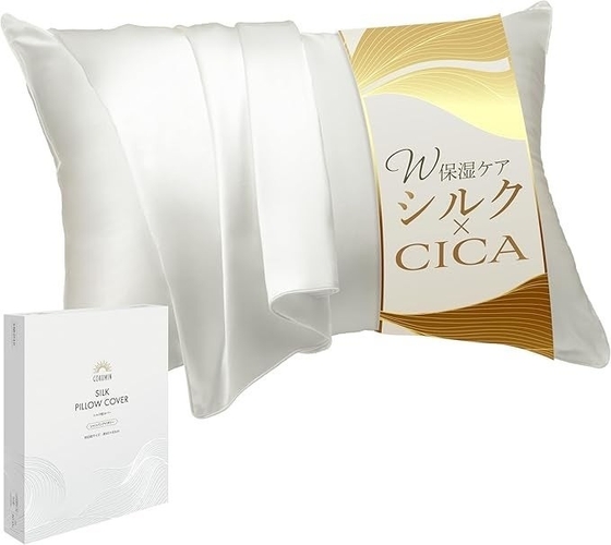 美髪&美肌を叶える贅沢仕様のピローケース。表面には最高級ランク“6Aグレード”の天然シルク100%を採用し、繊維が極めて細かく滑らかなため、寝ている間の髪のパサつきや肌の摩擦ダメージを抑え、翌朝はしっとりとまとまるツヤ髪と、うるおいを保ったなめらかな肌へと導きます。25匁という高密度シルクは一般的なシルクの約2倍の繊維密度で、毛羽立ちにくく長く光沢と風合いをキープ。また、乾燥・ムレに悩む一年中の快眠に配慮し、保湿効果に優れたシルクに加え、話題のCICA(ツボクサエキス)を配合。吸放湿性も高く、敏感肌の方にもやさしい設計です。