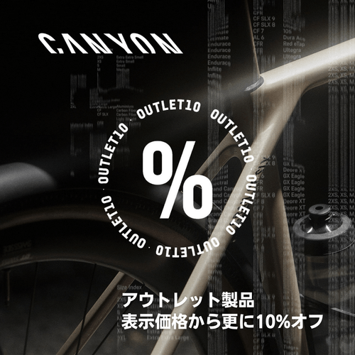 アウトレット商品は「新品のアウトレット品」および「キャニオン基準で検査済みの正規品(展示車・試乗車・返品対応品・プロ仕様品など)」を特別価格で販売しており、さらに10%の追加割引が適用されます。