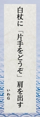 解説 これまで街中で時々見かけたことはありますが、視力障がいの方に対して、積極的に声掛けをして、少しでも手助けが出来ればと思い句を作りました。