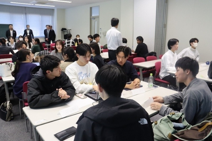 学生は4~6人の計9グループに分かれて、それぞれ役割を分担し、ディスカッションを重ねてプレゼンテーション案を練り上げます。