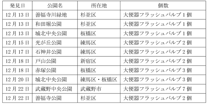 公園職員・委託警備員による巡回および来園者からの通報によりフラッシュバルブの盗難が判明