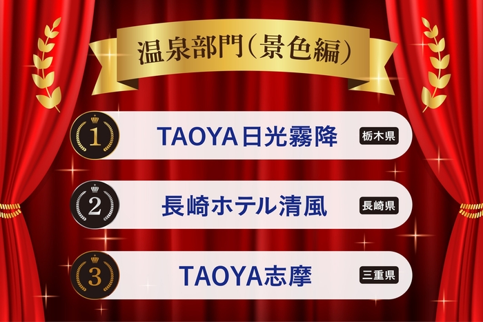 温泉(景色)部門:「この景色は一生忘れない!」との声も。「TAOYA日光霧降」が第1位に。