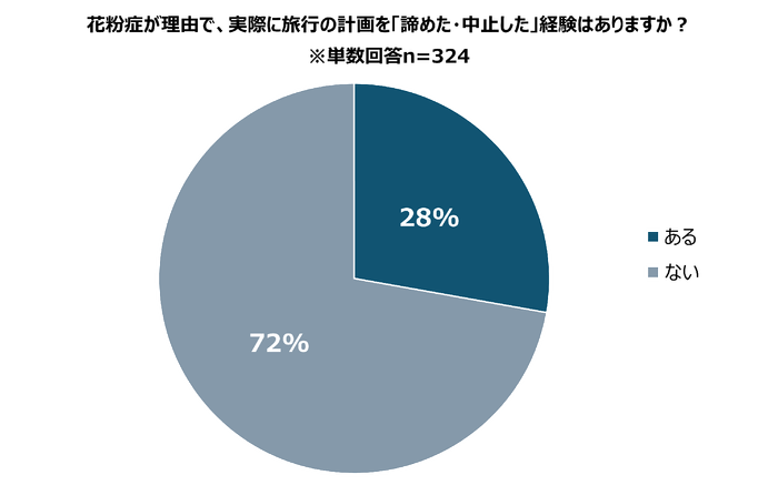 また、実際におよそ3割が「花粉症が理由で旅行を諦めた・中止した経験がある」ことが判明。