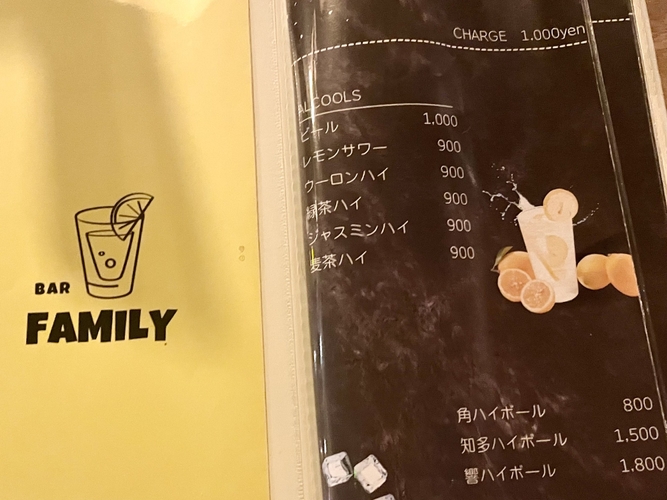 ドリンク価格:ショット 800円〜ソフトドリンク 650円〜