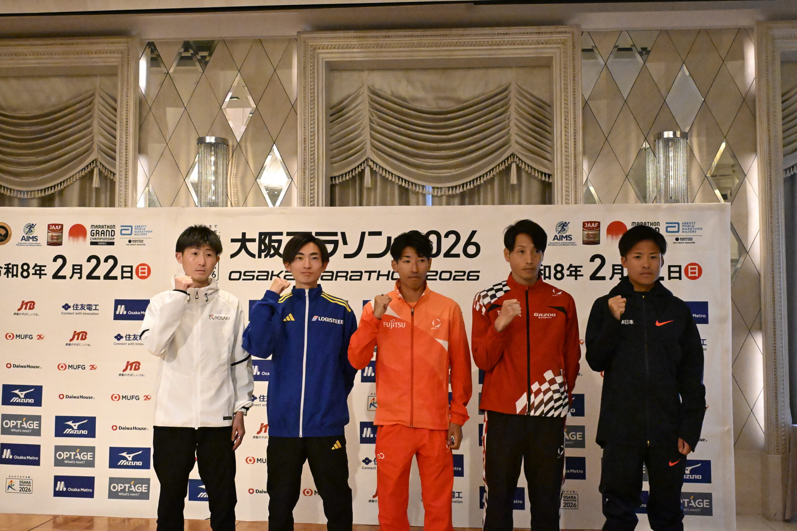 2028年ロサンゼルス・オリンピックの代表選考会「マラソングランドチャンピオンシップ(MGC)」の出場権が懸かる「大阪マラソン2026」の開催を22日に控え、国内外の有力選手による記者会見が20日、大阪市内のホテルで午後4時から1時間にわたって行われました。会見には、2022年世界選手権代表の西山雄介さんや、2024年大会を初マラソンで制した平林清澄さんらが出席し、本番に向けた意気込みを語りました。