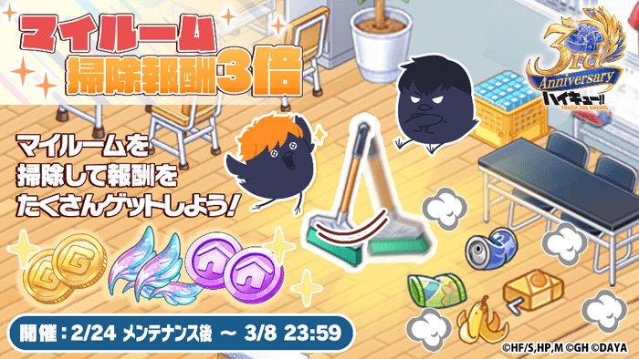 ▼マイルーム掃除報酬が3倍に!