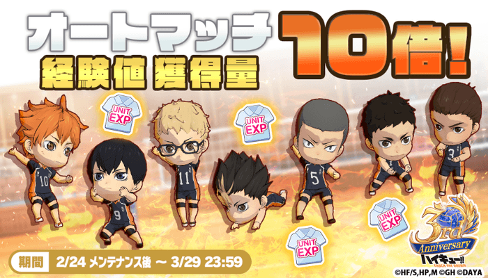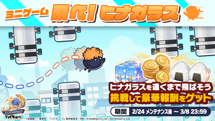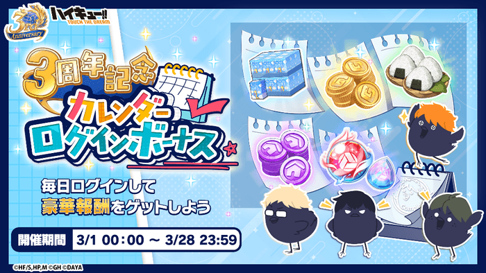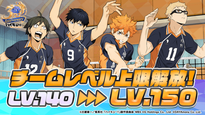 株式会社Gホールディングスは、アニメ『ハイキュー!!』のスマートフォンゲーム『ハイキュー!! TOUCH THE DREAM』略称『ハイドリ』の3周年を記念して、2026年2月24日(火)より3周年キャンペーンの開催、2026年2月25日(水)20時00分よりスペシャルなゲストをお迎えして3周年記念生放送を実施いたしますことをお知らせいたします。
