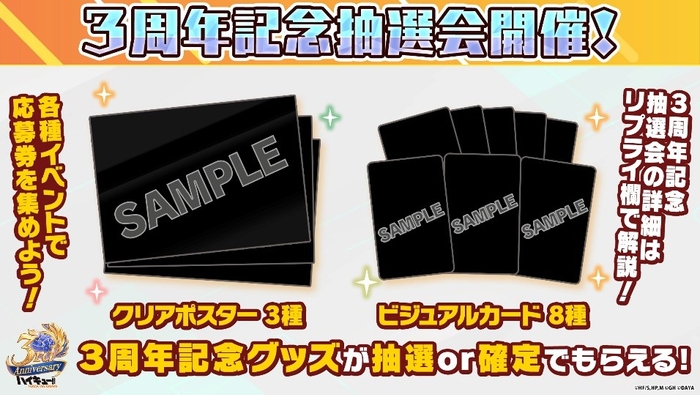 3周年ビジュアルを使用した『3周年記念クリアポスター』または『3周年記念ビジュアルカード』を合計210名様にプレゼントいたします!