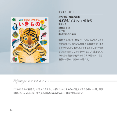 図鑑デビューを飾るお子様に特化した選書となっており、本格的な知識を深める『小学館の図鑑NEO』はもちろん、低年齢から指先を使って遊べる『まどあけずかん』も掲載しています。お子様の知的好奇心に合わせて、お好きな一冊からスタートしていただけます。