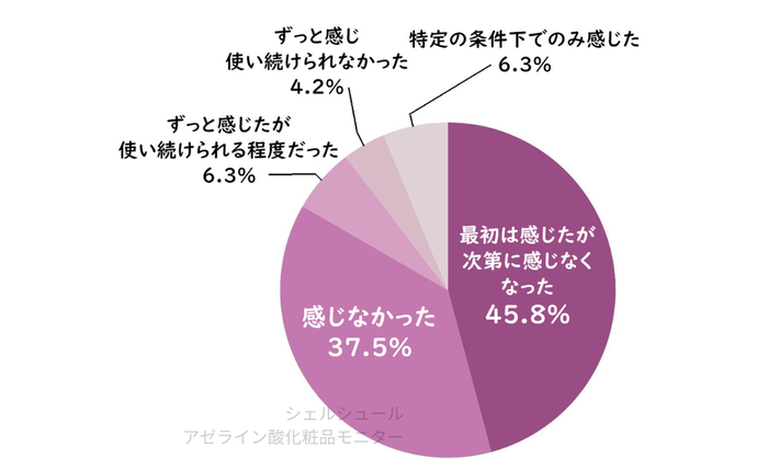 モニターをした敏感肌の方のうち、37.5%が「刺激を感じなかった」と回答。