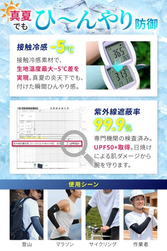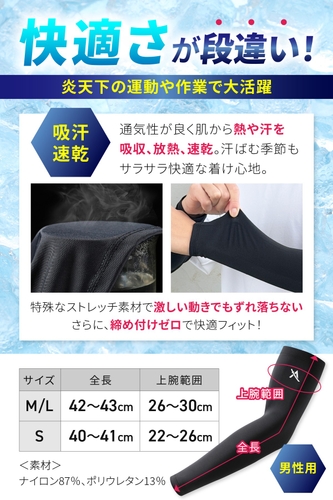 『侍アーム』は、近年の酷暑における熱中症対策や紫外線対策のニーズに応えるべく開発された高機能アームカバーです。