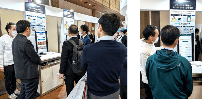 連日多くの流通・小売関係者の皆様にお立ち寄りいただき、オウンドアプリとセルフレジシステムが1つになった利便性向上、販促効果への関心の高さを確認する機会となりました。東芝テック「ピピットセルフ」との連携による新たな決済機能についても、プロトタイプソリューションを用いたデモンストレーションを行い、「次世代の店舗づくりのイメージが湧いた」「お買い物から決済まで一気通貫で、やりたいことがすべて詰まっている」といった評価を頂きました。