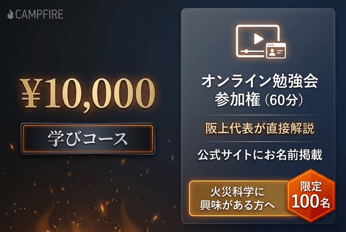 【10,000円】学びコース:最新火災研究・正しい避難法を学ぶオンライン勉強会(お名前掲載特典付き)