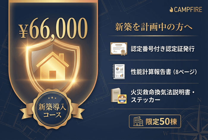 【66,000円】新築導入コース:新築住宅への火災救命換気法設計シミュレーション実施・認定証発行