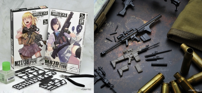 リアルな銃火器を精密に再現するプラモデル『リトルアーモリー』。2014年の発売以来、200種を超える製品を展開し、多彩なイラストレーター陣が描く「リアルミリタリー×女子高生」のパッケージアートが魅力のシリーズです。そのビジュアルは模型の枠を越えてキャラクターとして息づき、ノベル・コミック・グッズなど、幅広いメディアへと広がり、ついに舞台化されることが発表されると、瞬く間に話題となりました!