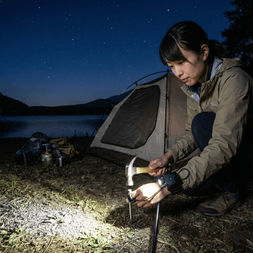 照射角度は手首の自然な動きに合わせて設定されており、ユーザーの視線と照射方向が自動的に一致するように設計されています。広角から集光スポットまで調整可能な照射パターンにより、夜間の歩行、暗所での細かい作業、アウトドア活動、防災用途など、多様なシーンに対応できます。