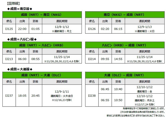 スプリング・ジャパン 2025年度冬ダイヤ国際線に南京・ハルビン・大連が追加 国際線の航空券タイムセールも同時開催