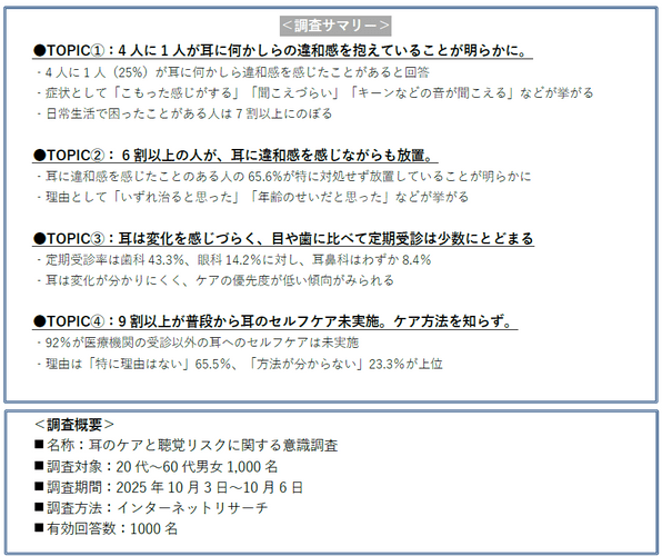 耳のケアと聴覚リスクに関する意識調査 耳に違和感を感じた人の65.6%が対策せずに放置 「いずれ治ると思った」「年齢のせいだと思った」が理由の上位