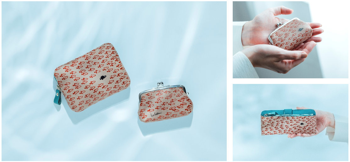 絵本作家レオ・レオニの『スイミー』と、日本の伝統革工芸「甲州印伝」が初コラボレーション!小さな魚たちとスイミーを2色の漆で表現した、「財布」「ポーチ」「ミラー」など、7種類を渋谷ヒカリエ内で開催中の「レオ・レオーニの絵本づくり展」で先行発売!