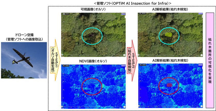 ドローンとAI解析技術を活用した「枯れ木検知AIサービス」を新たに開発。枯れ木調査業務の高度化・効率化を目指します