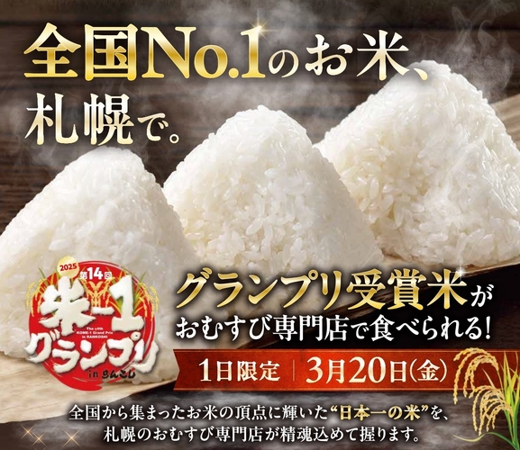 お米の日本一が決定!第14回「米ー1グランプリ」優勝みつわ農園の「ゆうだい21」が札幌に初上陸。3月20日市内おむすび専門店3店で1日限定の特別提供イベントを開催!