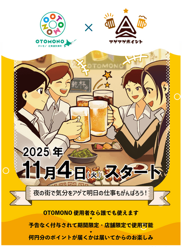 躍進続く!デジタル地域通貨「OTOMONO」、3,000人突破を記念し、サプライズ企画「オトモノAAポイント」付与キャンペーンを11月4日より開始!
