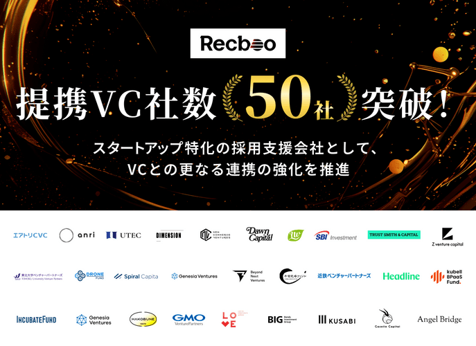 当社子会社のノックラーン社が運営するスタートアップ特化型の採用支援サービス「Recboo」 が国内の主要VCとの提携社数50社を突破!