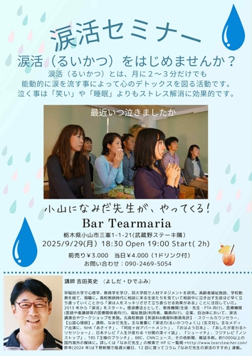 【栃木県小山市】涙活(るいかつ)セミナーをバーで開催 – 癒しの涙とお酒(tearカクテル)と共に心の解放を
