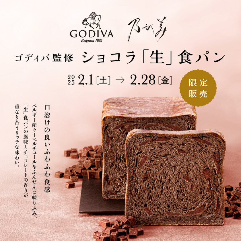 「乃が美」×「ゴディバ」が贅沢コラボ! チョコレート練り込んだ「生」食パンが登場