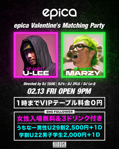 特別ゲストにU-LEEとMARZYを迎えた『epica Valentine’s Matching Party』が開催