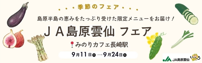 ~島原半島の恵みをたっぷり受けた限定メニューをお届け~ みのりカフェ長崎駅店で「JA島原雲仙フェア」を 9月11日(木)~9月24日(水)に開催