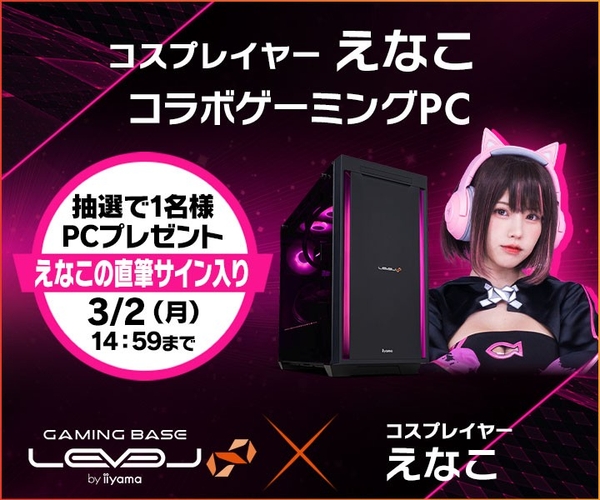 ゲーミングPC LEVEL∞、コスプレイヤー「えなこ」 バレンタインキャンペーンとして、最大5,000円分相当の還元付与 さらに、えなこのサイン入りコラボPCやサイドパネルをプレゼント