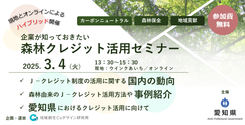 愛知県が主催する「森林クレジット活用セミナー」、地域の森林保全や地域活性化への新たな視点
