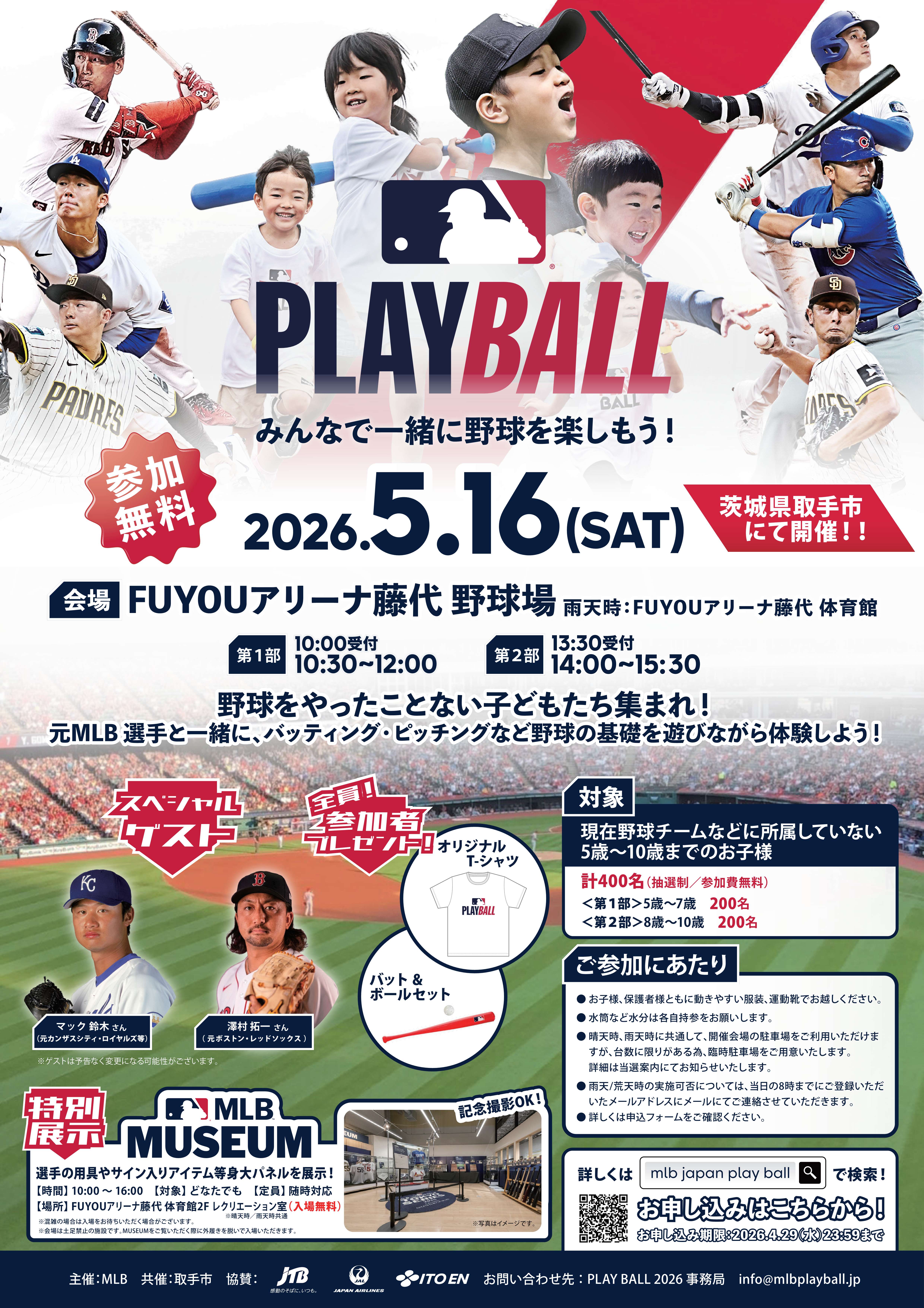 MLB主催 子ども向け参加型イベント「PLAY BALL」が5/16(土)茨城県取手市で開催!4/29(水)まで参加者を募集