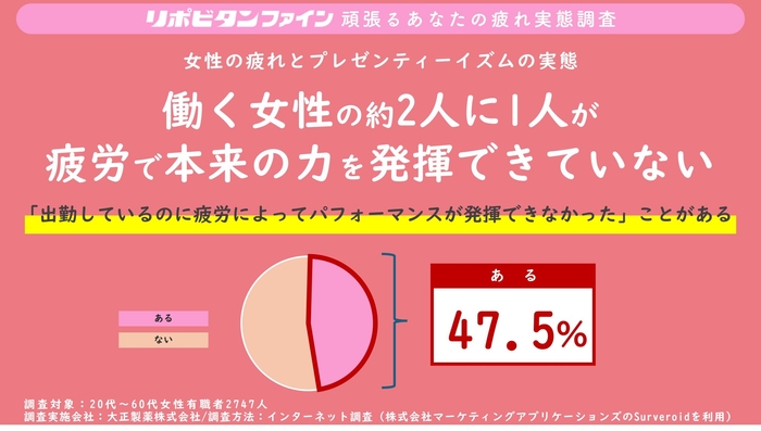リポビタンファイン連続調査企画「頑張るあなたの疲れ実態調査」 第五弾 働く女性の約2人に1人疲労で本来の力を発揮できていない!